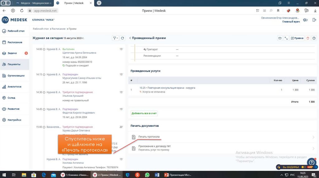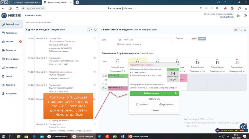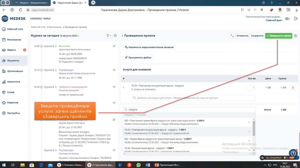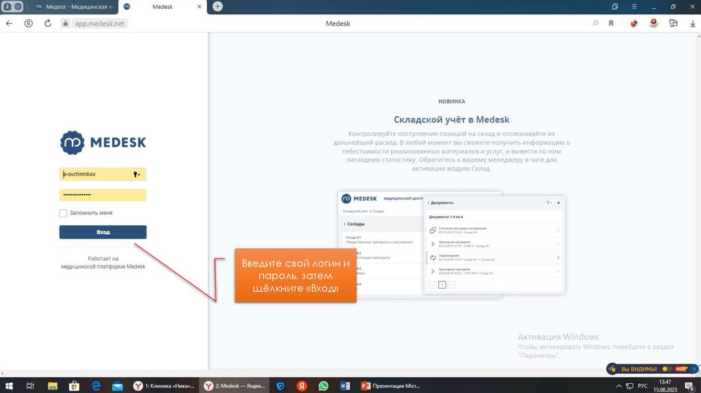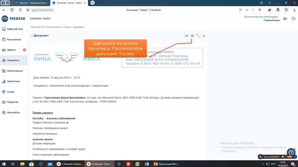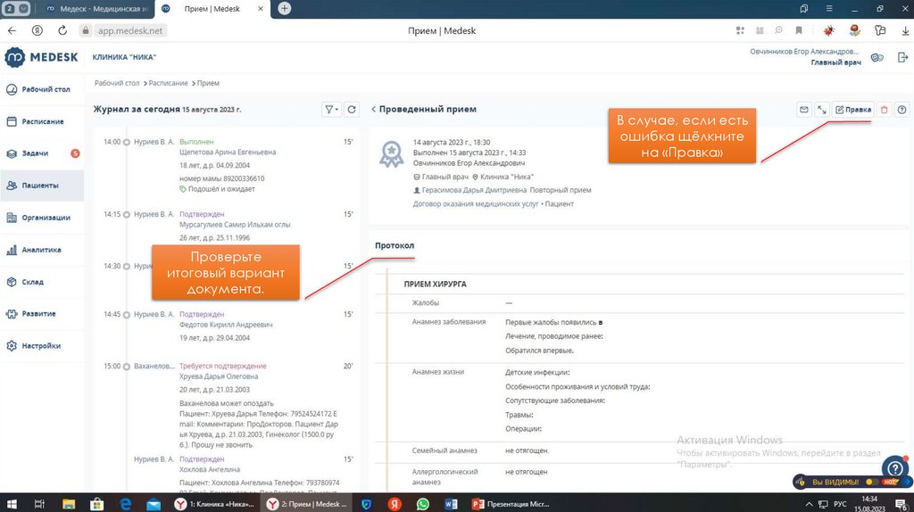 Инструкция по использованию Медеск для специалистов клиники «Ника»