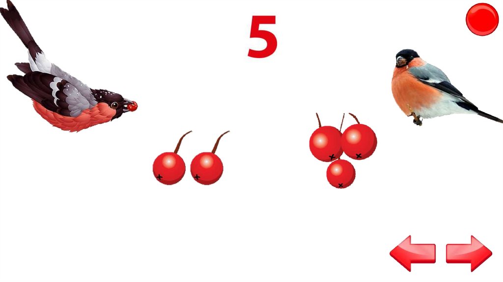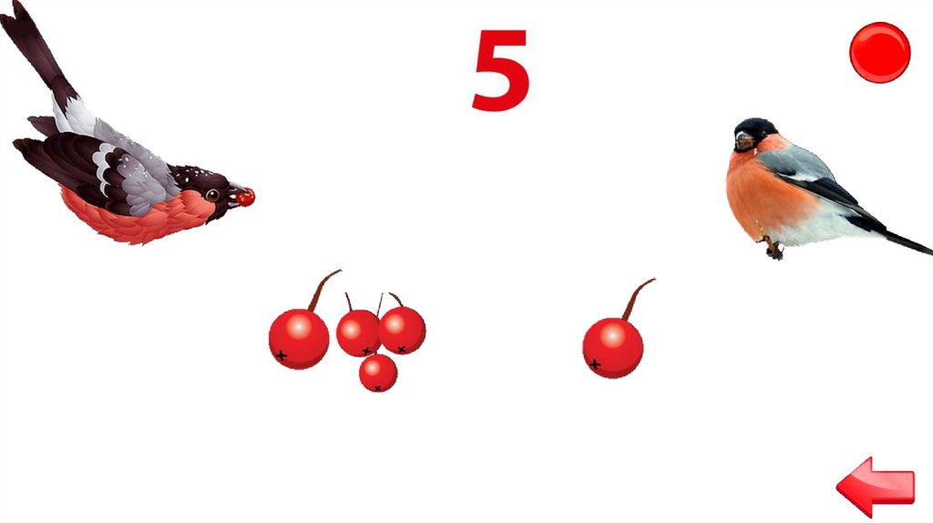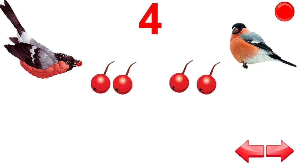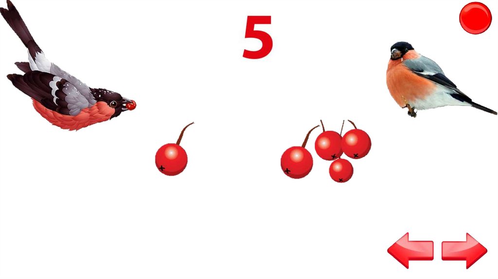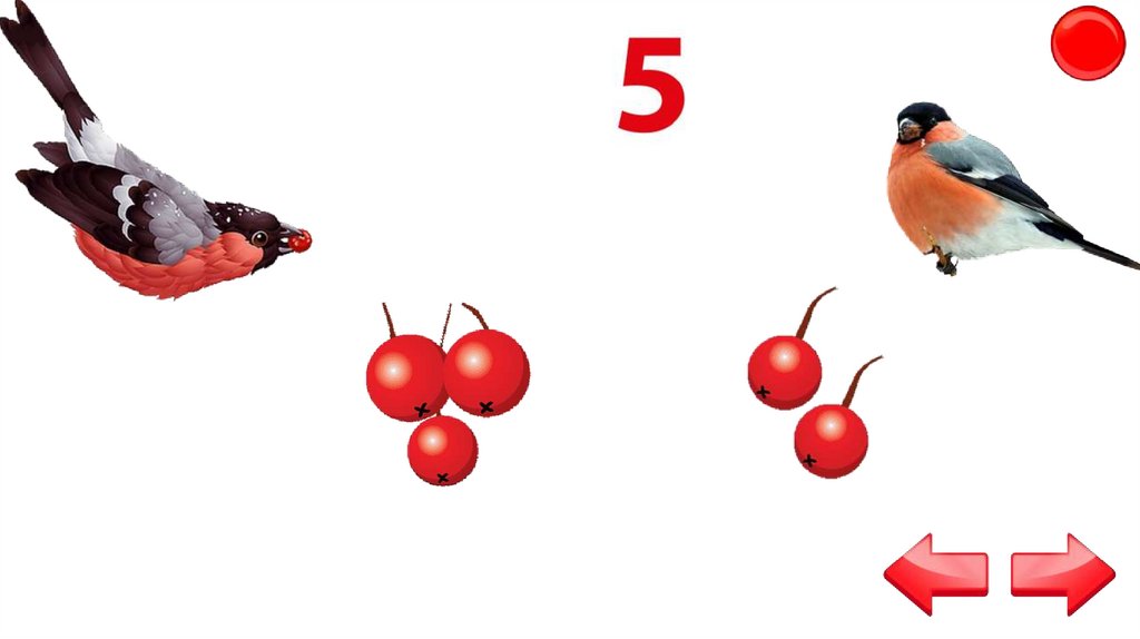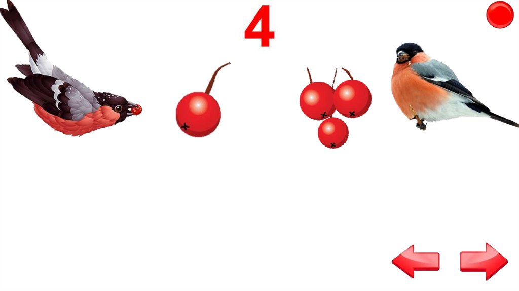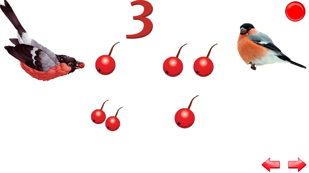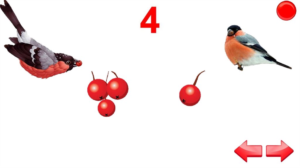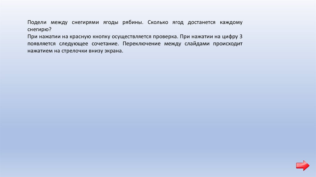 Подели между снегирями ягоды рябины. Сколько ягод достанется каждомуснегирю?