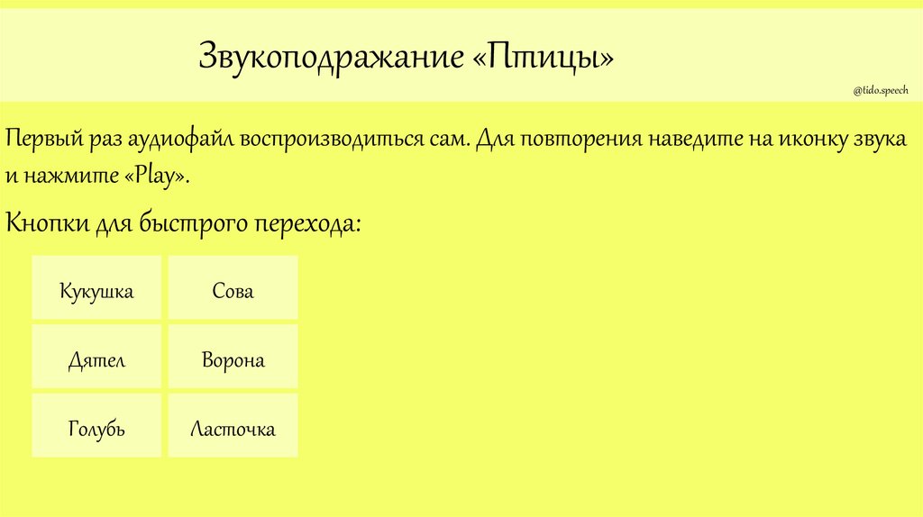Первый раз аудиофайл воспроизводиться сам. Для повторения наведите на иконку звука