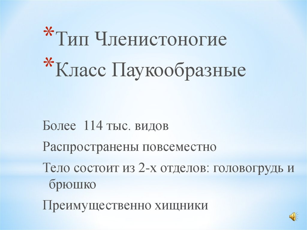 *Тип Членистоногие*Класс Паукообразные