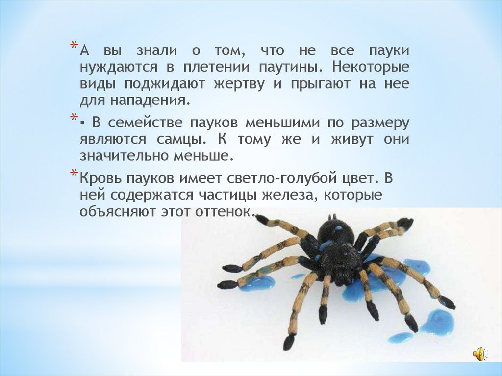 * Кровь пауков имеет светло-голубой цвет. В