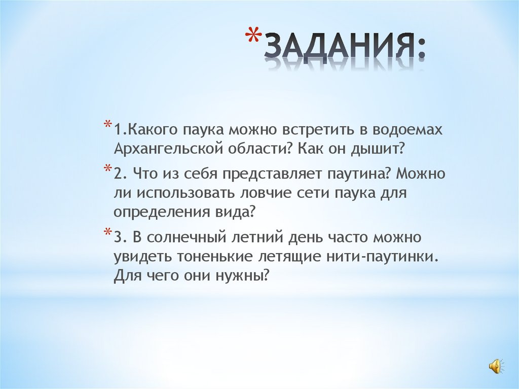 ** 1.Какого паука можно встретить в водоемах