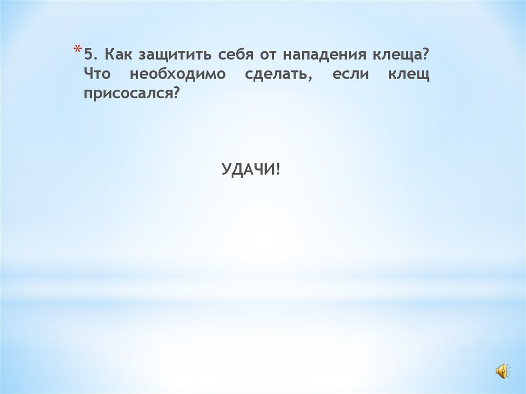 * 5. Как защитить себя от нападения клеща?Что необходимо