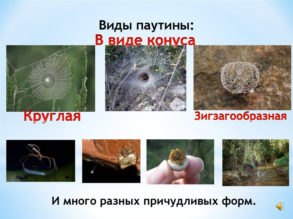 Виды паутины:И много разных причудливых форм.