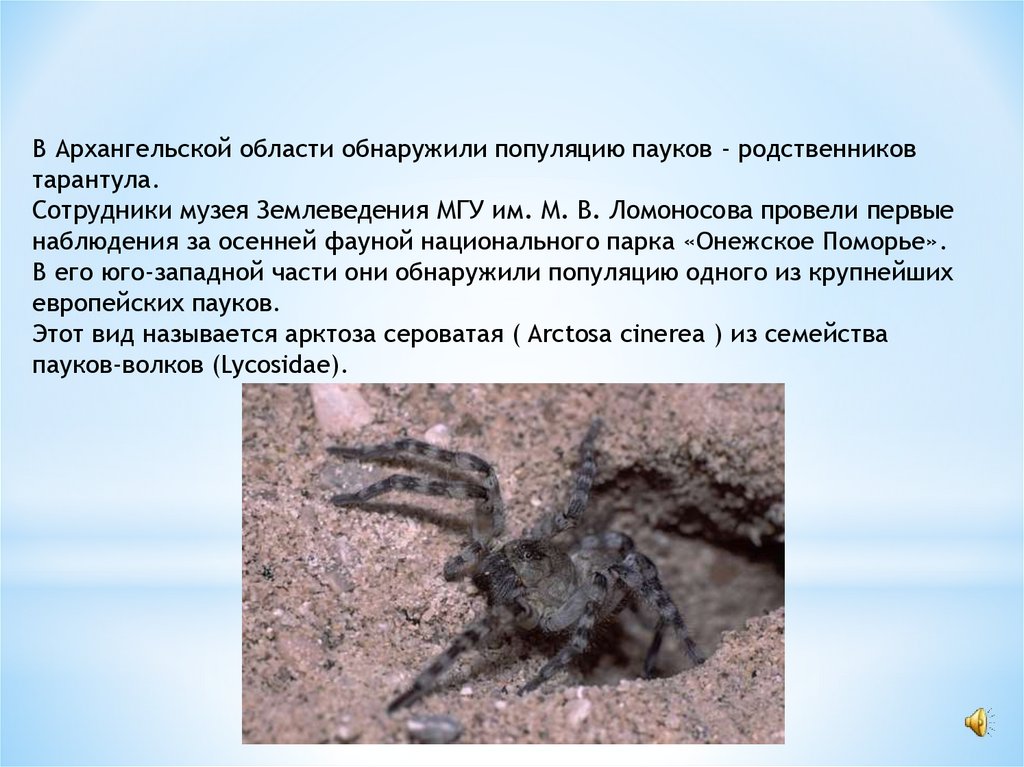 В Архангельской области обнаружили популяцию пауков - родственниковтарантула.