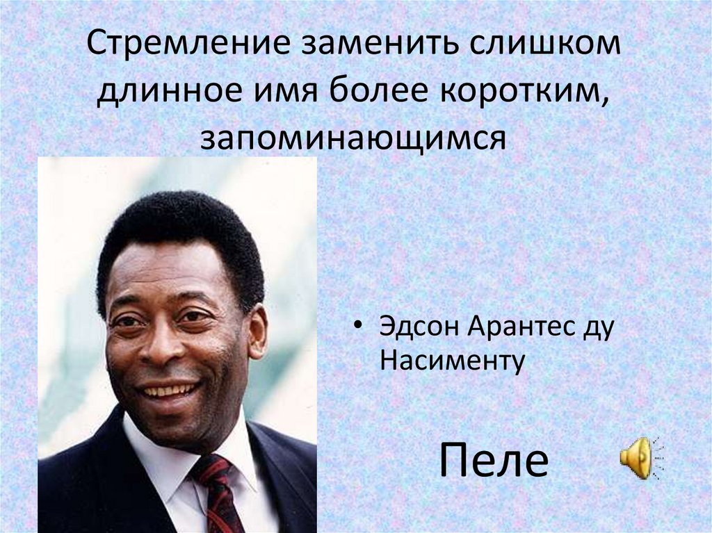 Стремление заменить слишкомдлинное имя более коротким,
