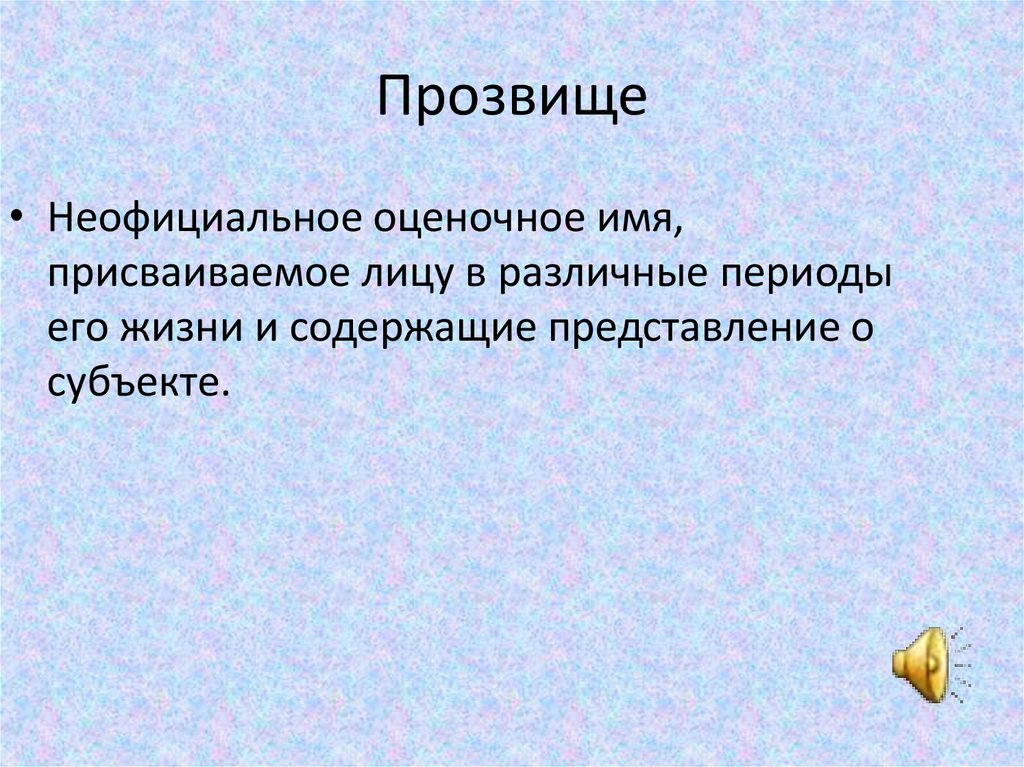 Прозвище• Неофициальное оценочное имя,