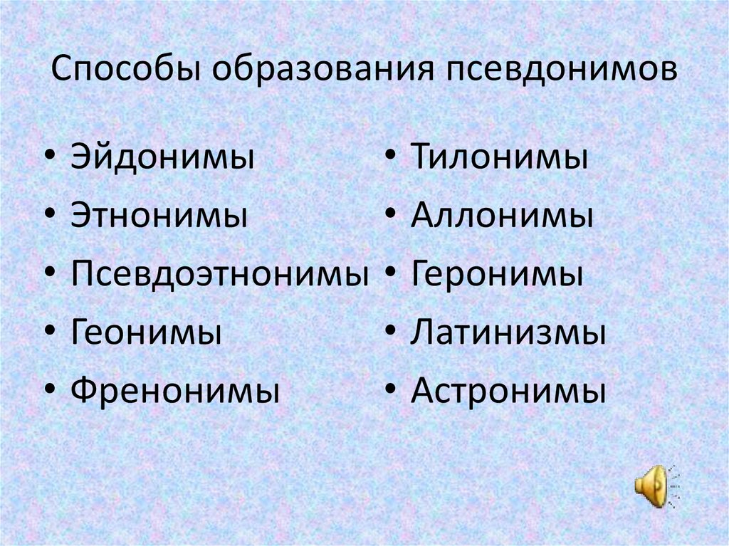 Способы образования псевдонимовЭйдонимы