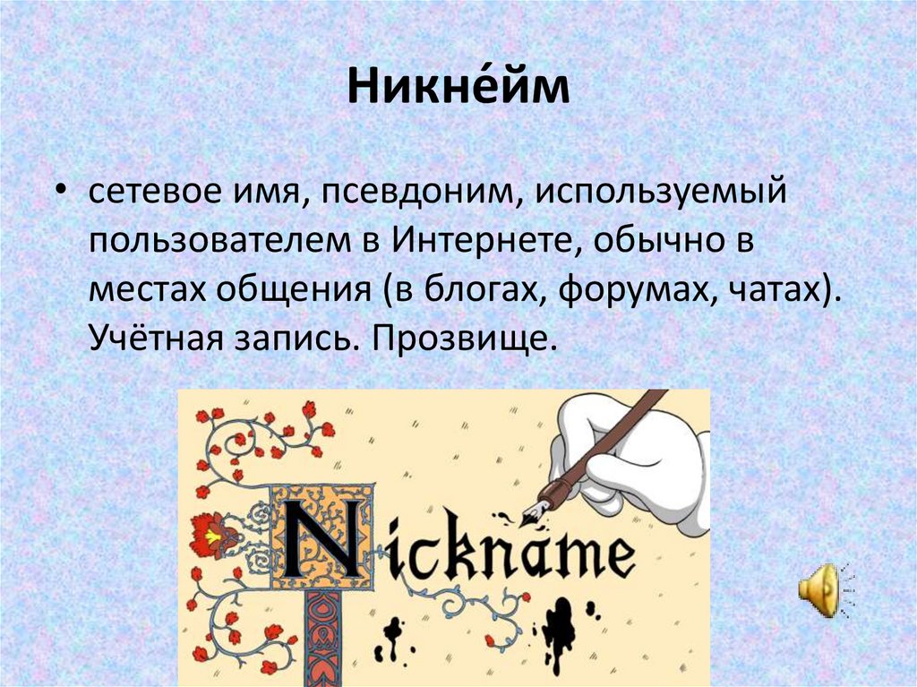 Прозвище, псевдоним, ник. Лекция 2