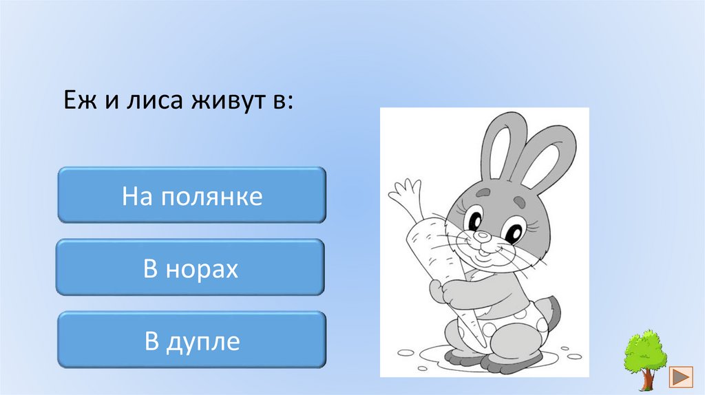 Еж и лиса живут в:На полянке