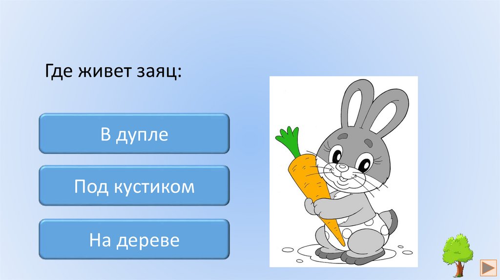 Где живет заяц:В дупле