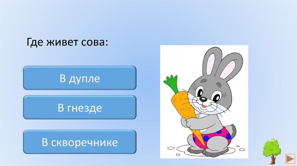 Где живет сова:В дупле