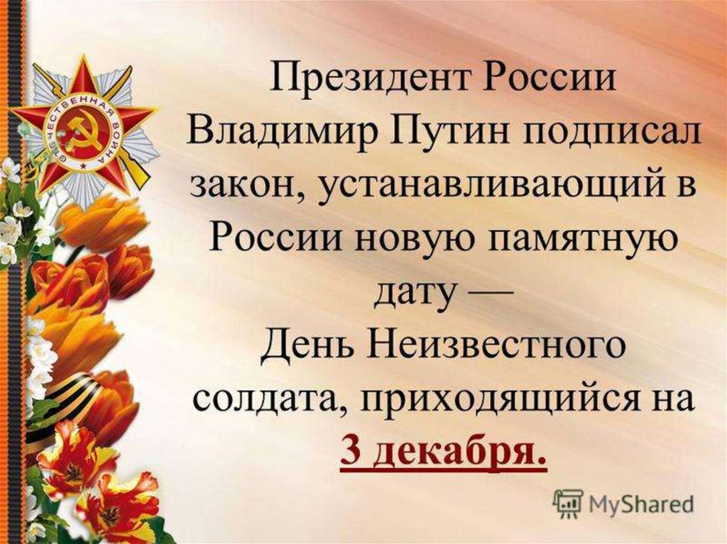 3 декабря - День Неизвестного солдата