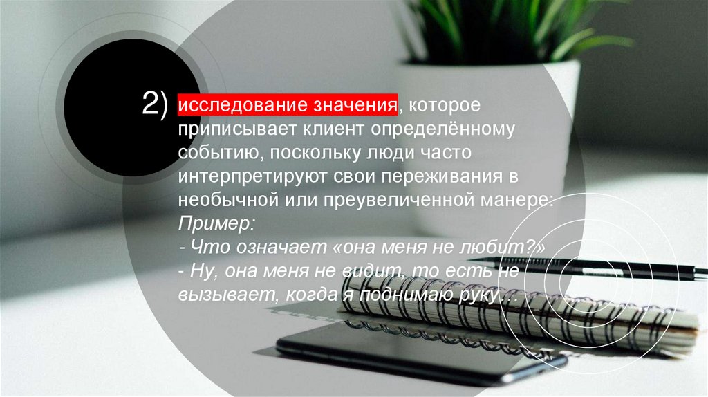 2) исследование значения, котороеприписывает клиент определённому
