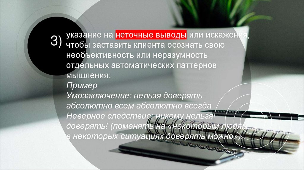 10) преодоление катастрофического характерамыслей клиента — предоставление клиенту