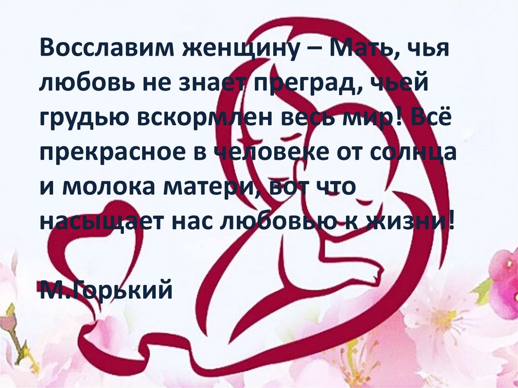 Восславим женщину – Мать, чьялюбовь не знает преград, чьей