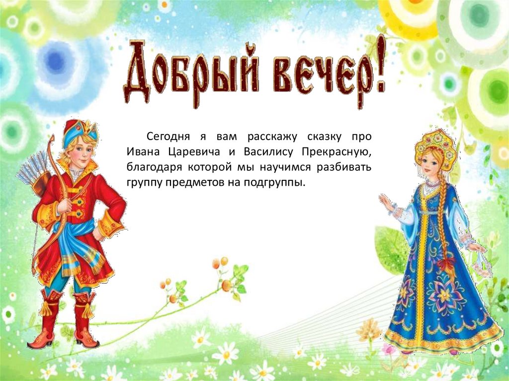 Сегодня я вам расскажу сказку проИвана Царевича и Василису Прекрасную,