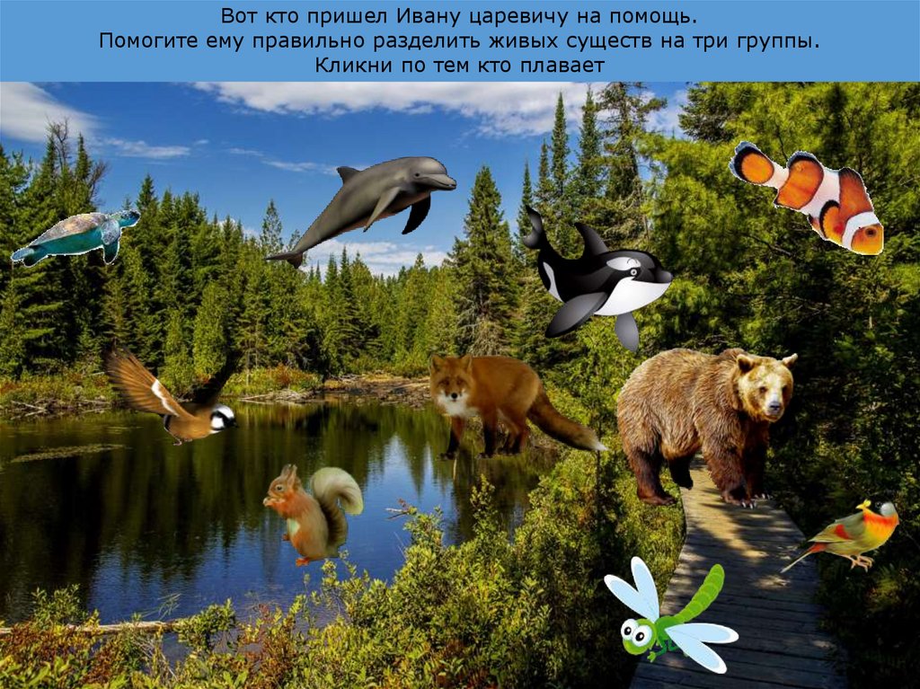 Вот кто пришел Ивану царевичу на помощь.Помогите ему правильно разделить живых существ на три группы.