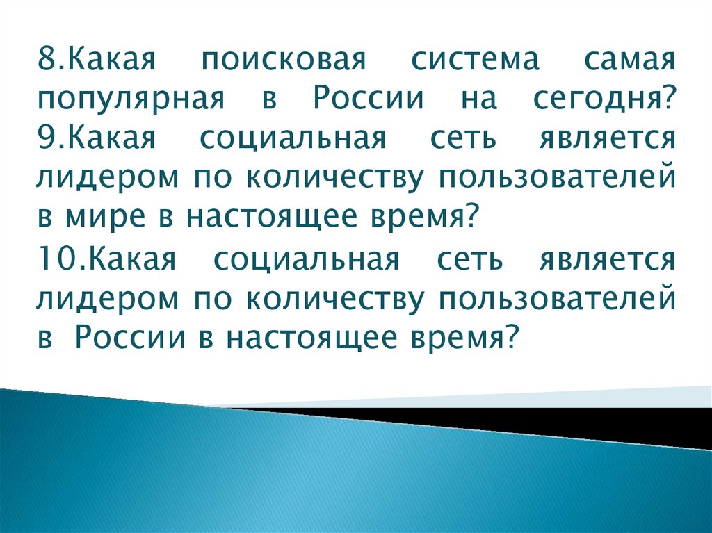 8.Какая поисковая система самаяпопулярная в России на сегодня?