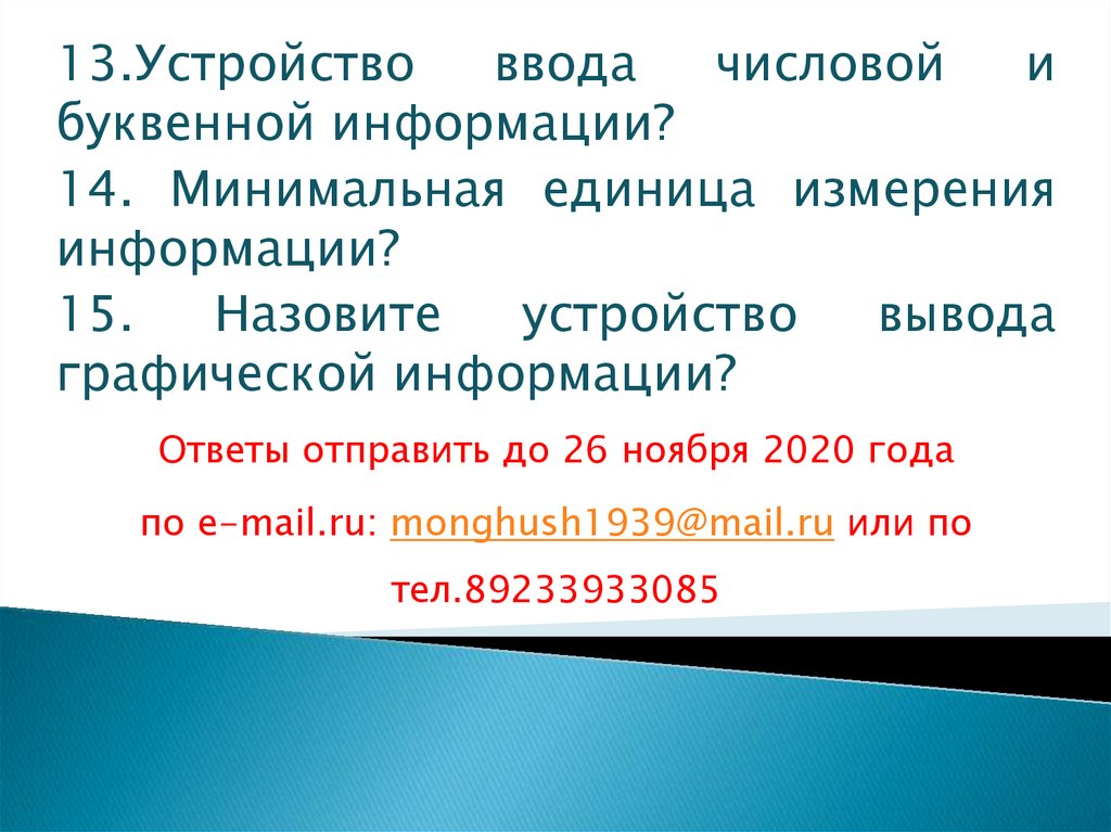 Ответы отправить до 26 ноября 2020 года