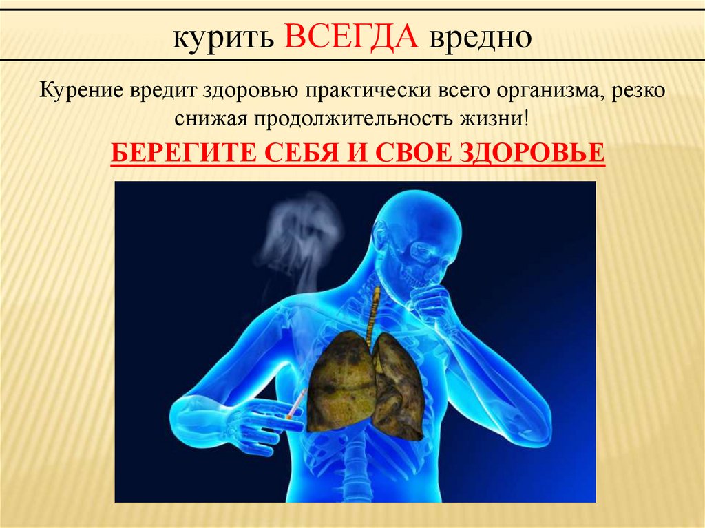 курить ВСЕГДА вредноКурение вредит здоровью практически всего организма, резко