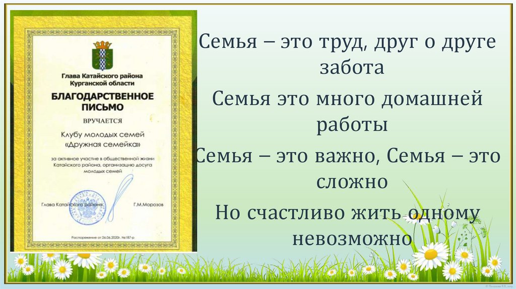 Семья – это труд, друг о другезабота