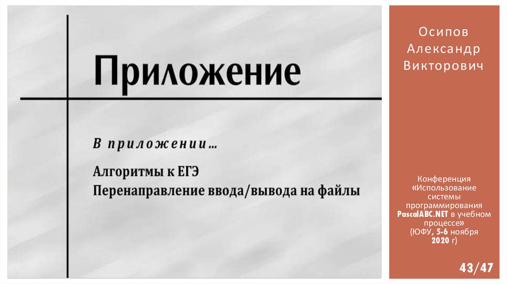 Осипов Александр Викторович «PascalABC.NET: выбор школьника»