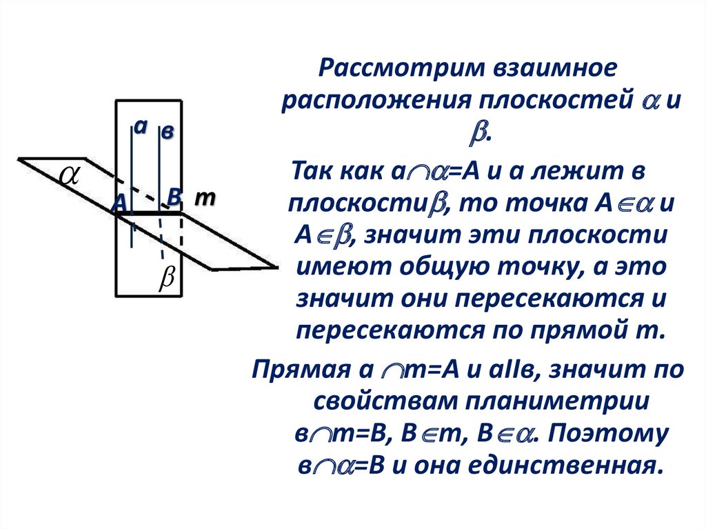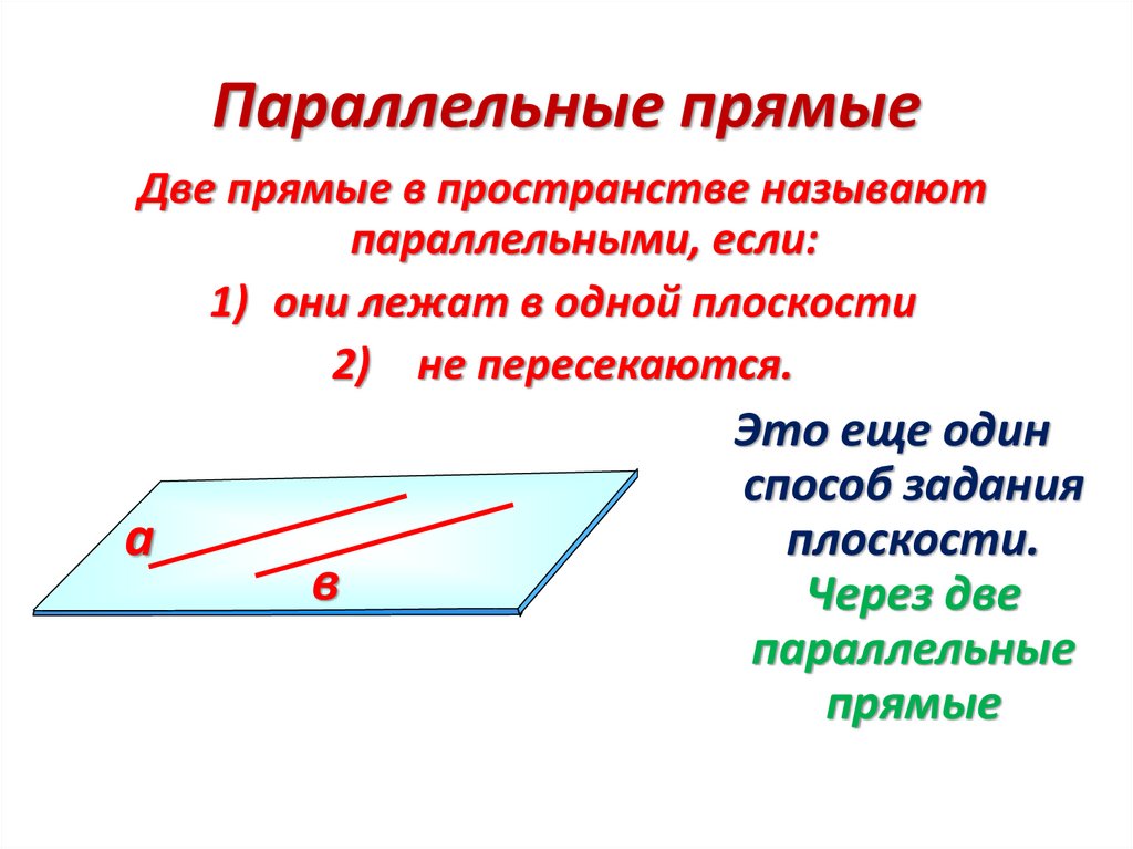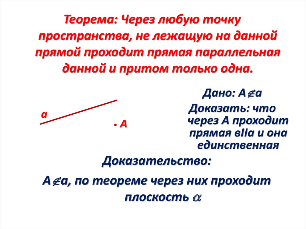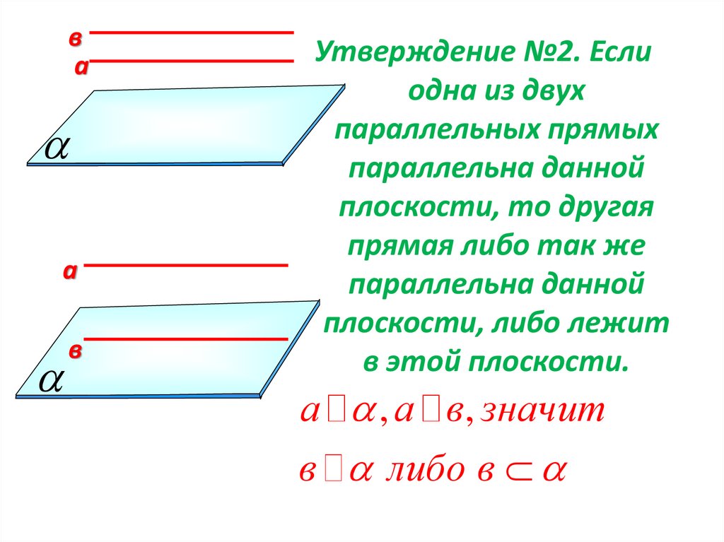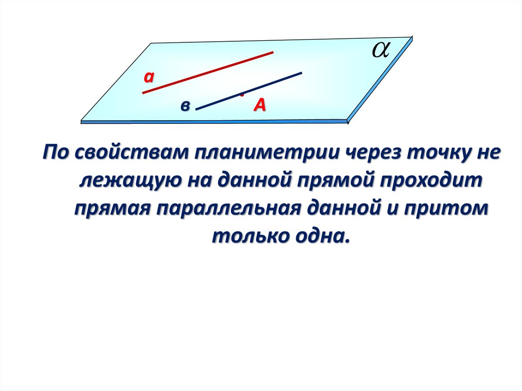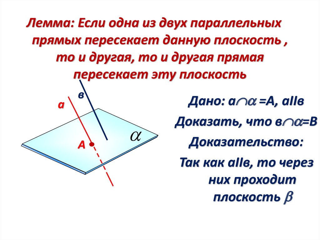 Лемма: Если одна из двух параллельныхпрямых пересекает данную плоскость ,