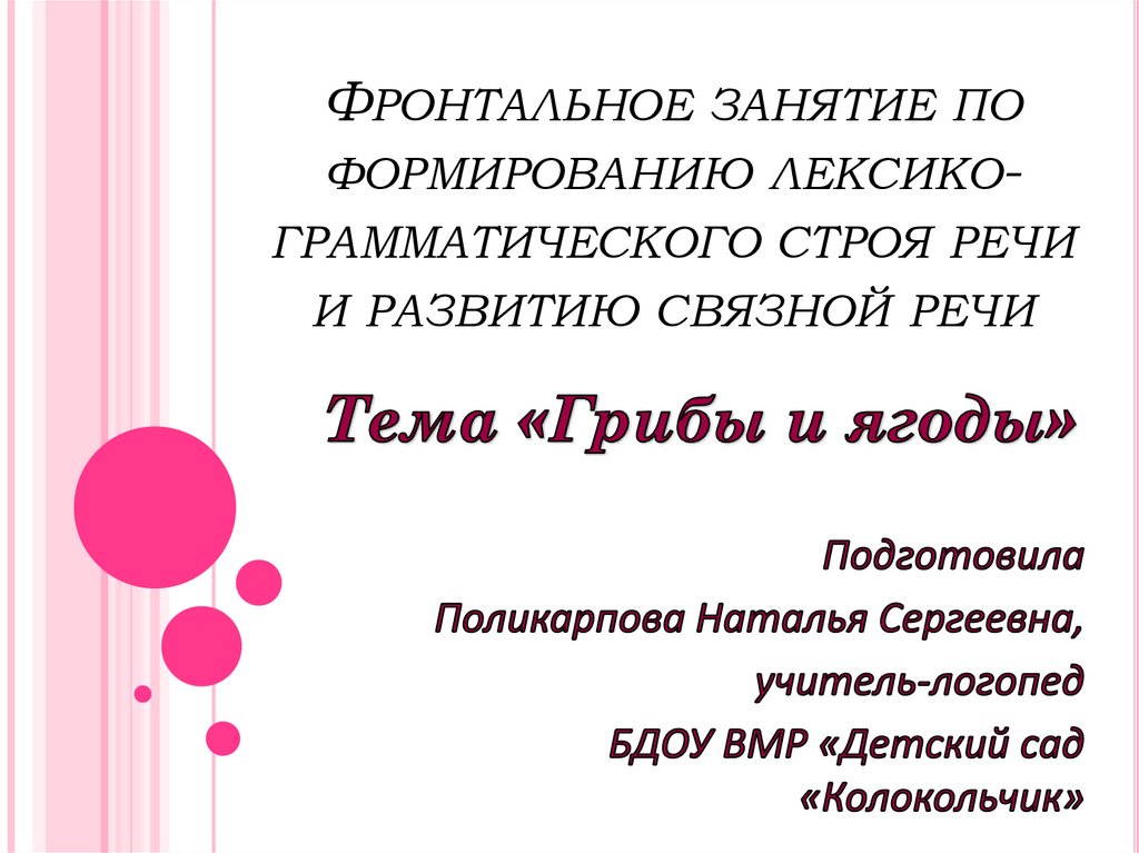 ФРОНТАЛЬНОЕ ЗАНЯТИЕ ПОФОРМИРОВАНИЮ ЛЕКСИКОГРАММАТИЧЕСКОГО СТРОЯ РЕЧИ