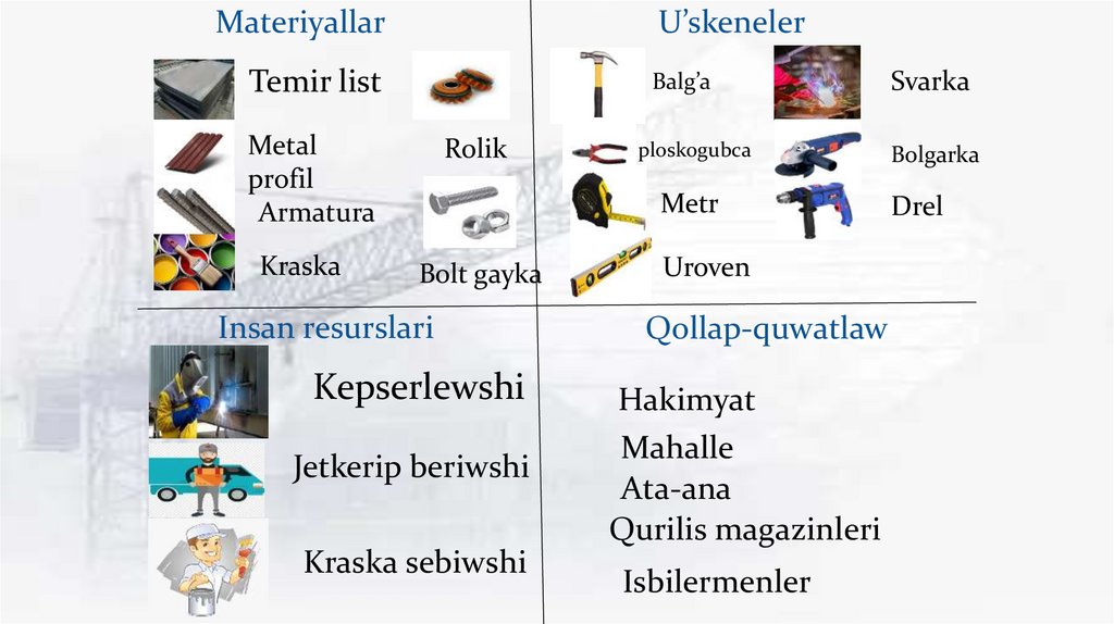 Metal profil………………………….6 m(5x5 sm)…….. 120 000sum