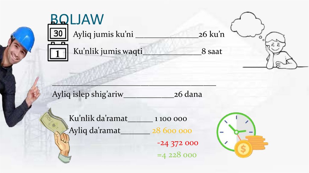 3. Boyawshi (ayliq)……………………….1 000 000