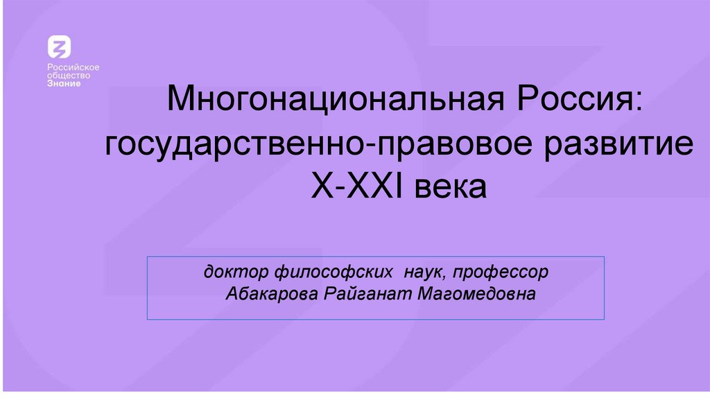 Многонациональная Россия: государственно-правовое развитие X-XXI века