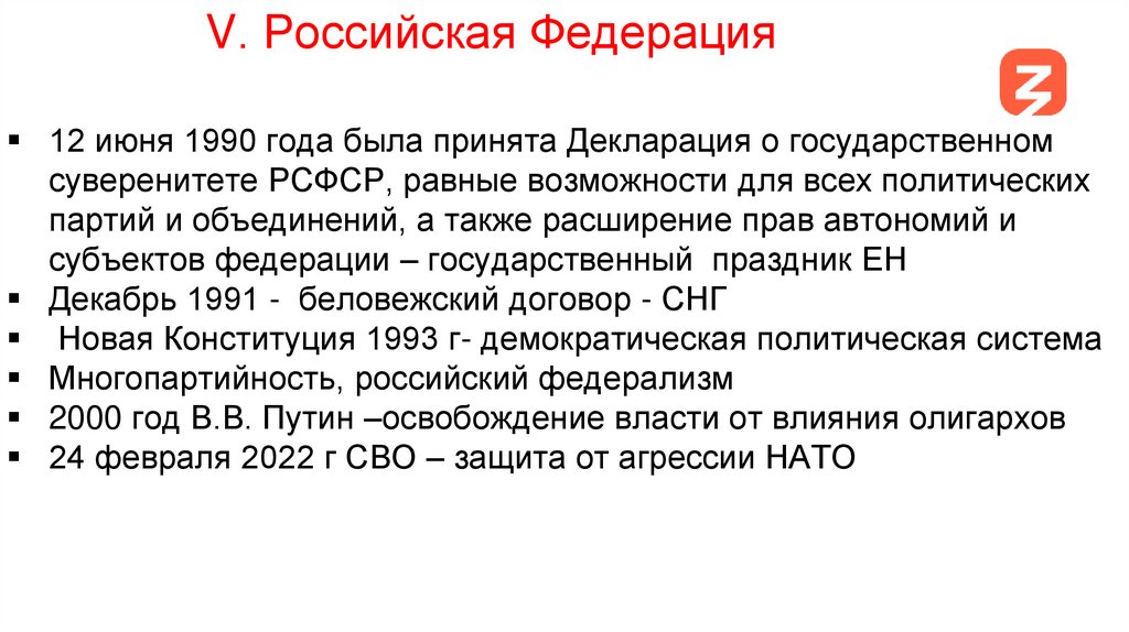 V. Российская Федерация12 июня 1990 года была принята Декларация о государственном