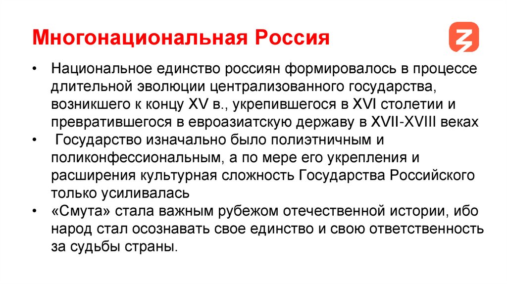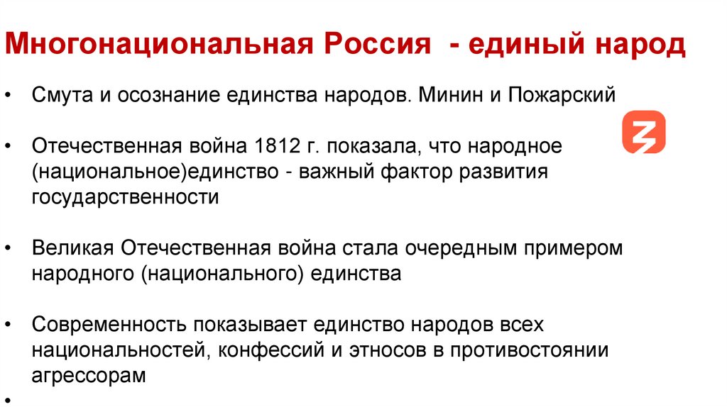 Многонациональная Россия - единый народ• Смута и осознание единства народов. Минин и Пожарский