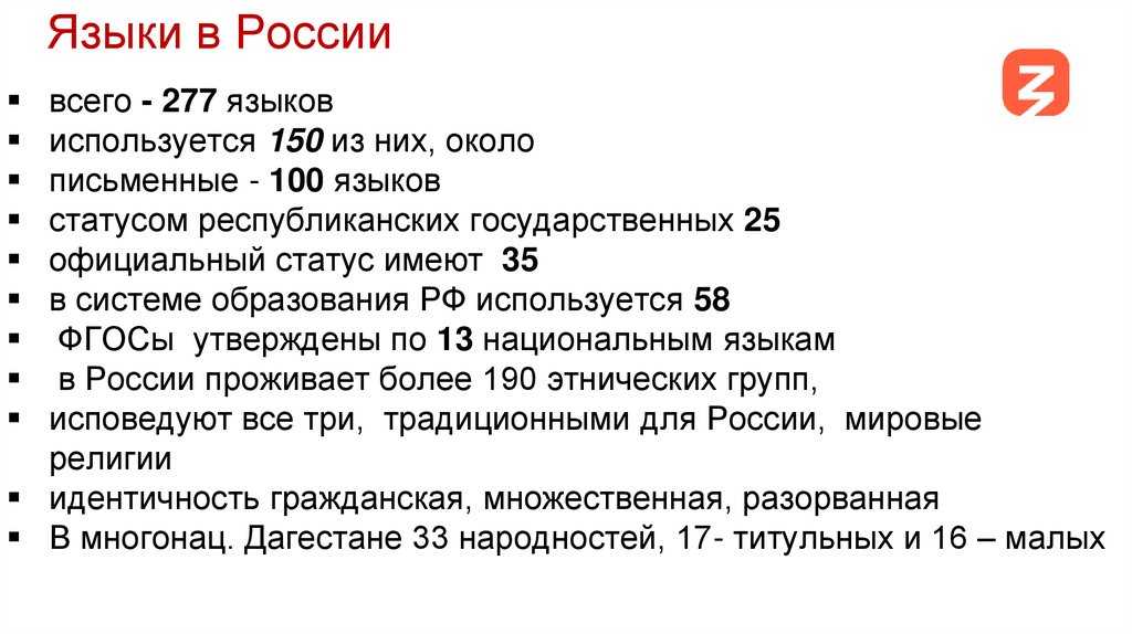 В многонац. Дагестане 33 народностей, 17- титульных и 16 – малых