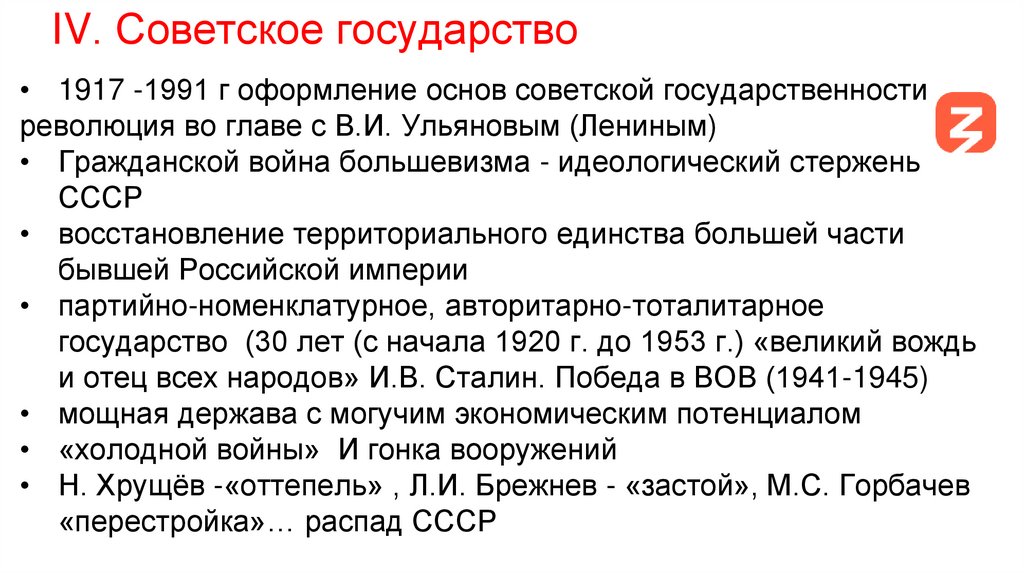 IV. Советское государство• 1917 -1991 г оформление основ советской государственности