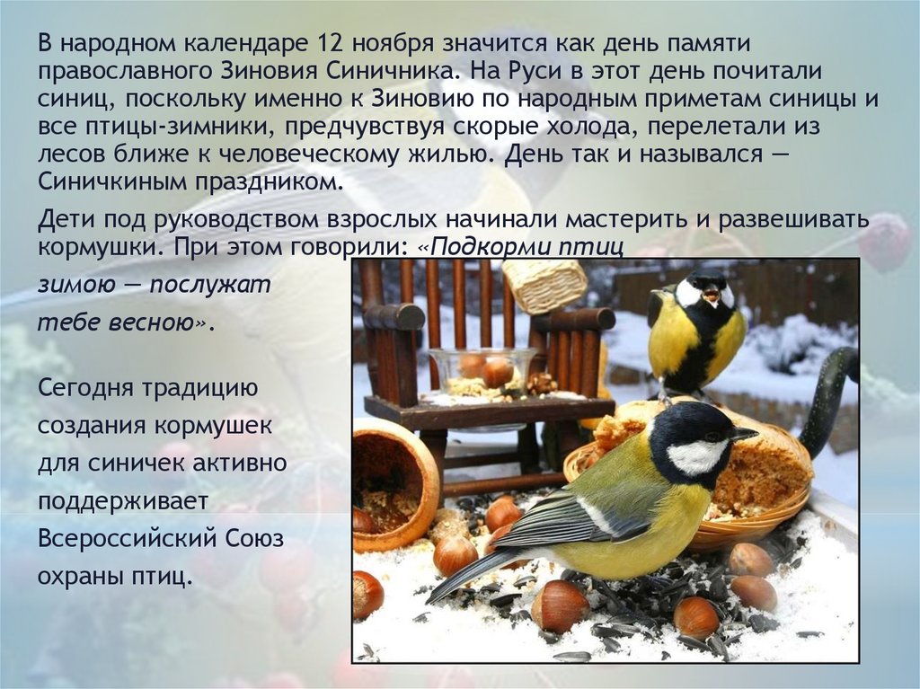 * Как и любой народныйпраздник, Синичкин день
