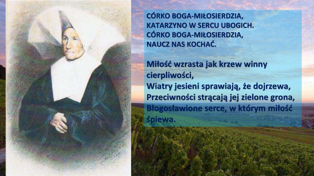 CÓRKO BOGA-MIŁOSIERDZIA,KATARZYNO W SERCU UBOGICH.