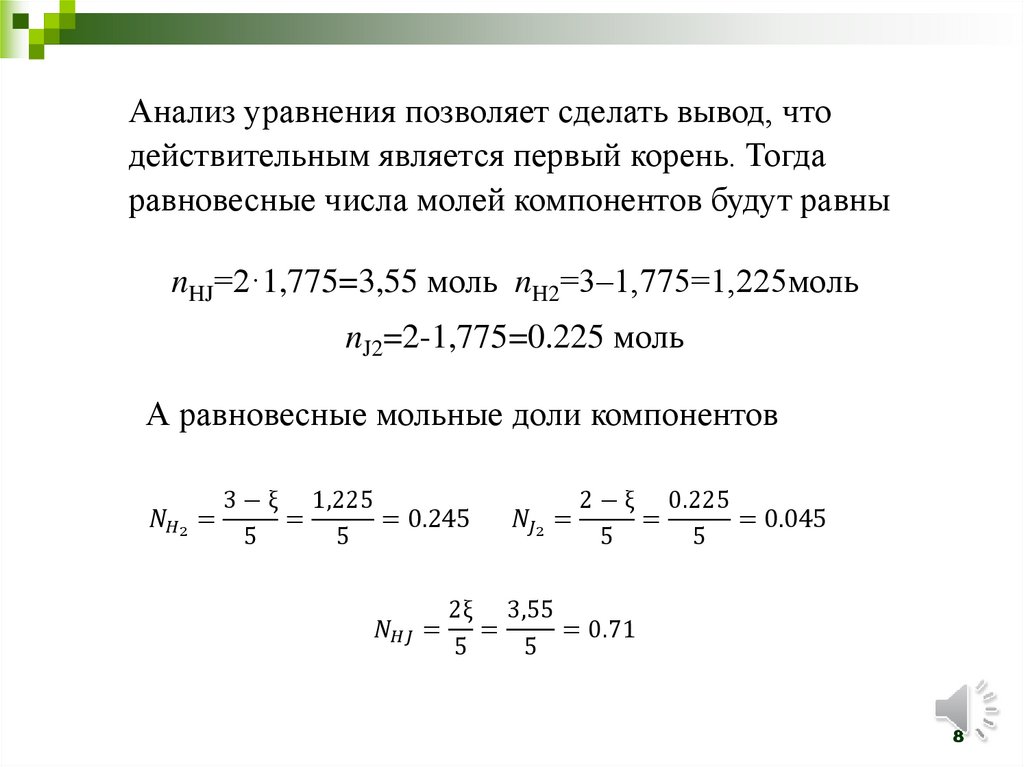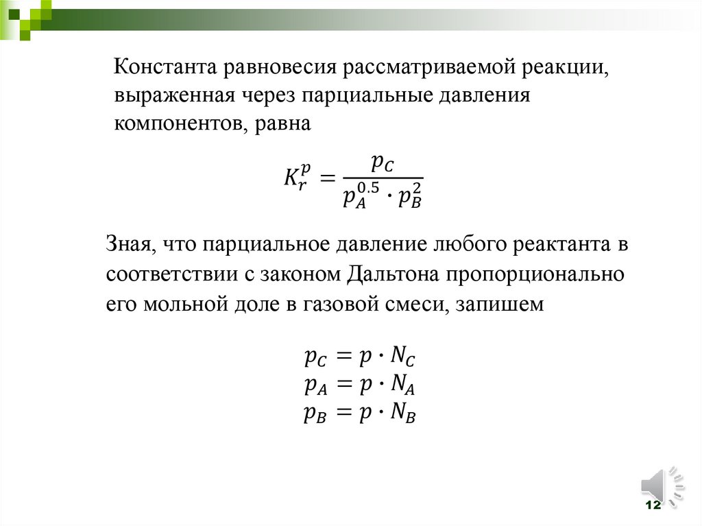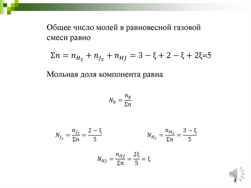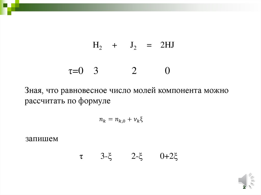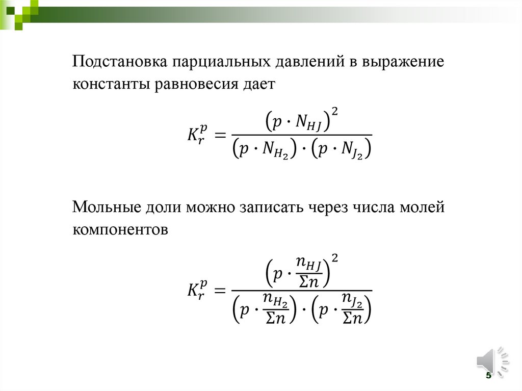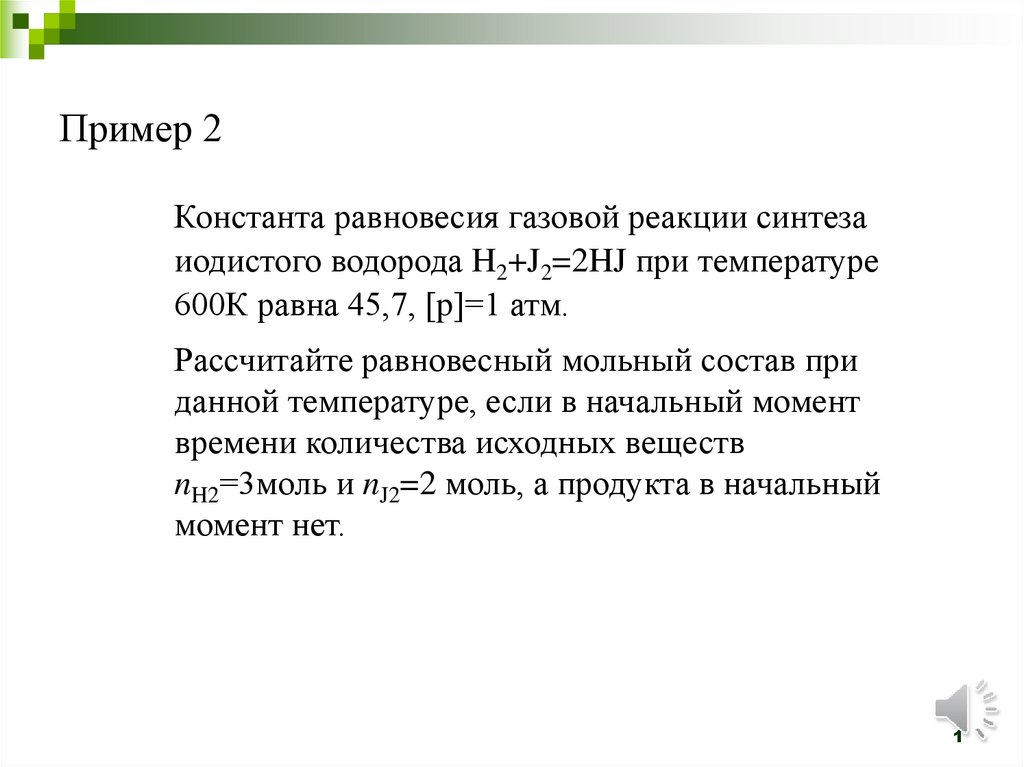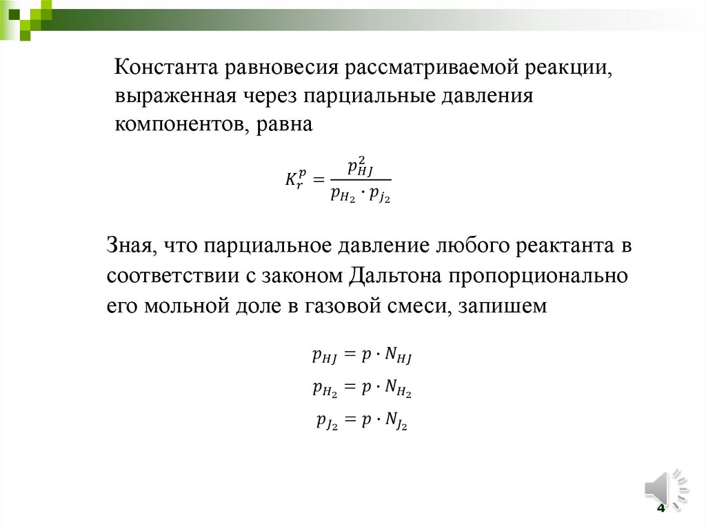 Константа равновесия газовой реакции синтеза иодистого водорода. Лекция 11-2