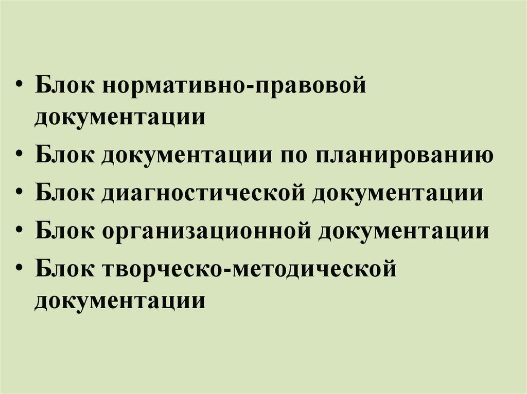 • Блок нормативно-правовойдокументации