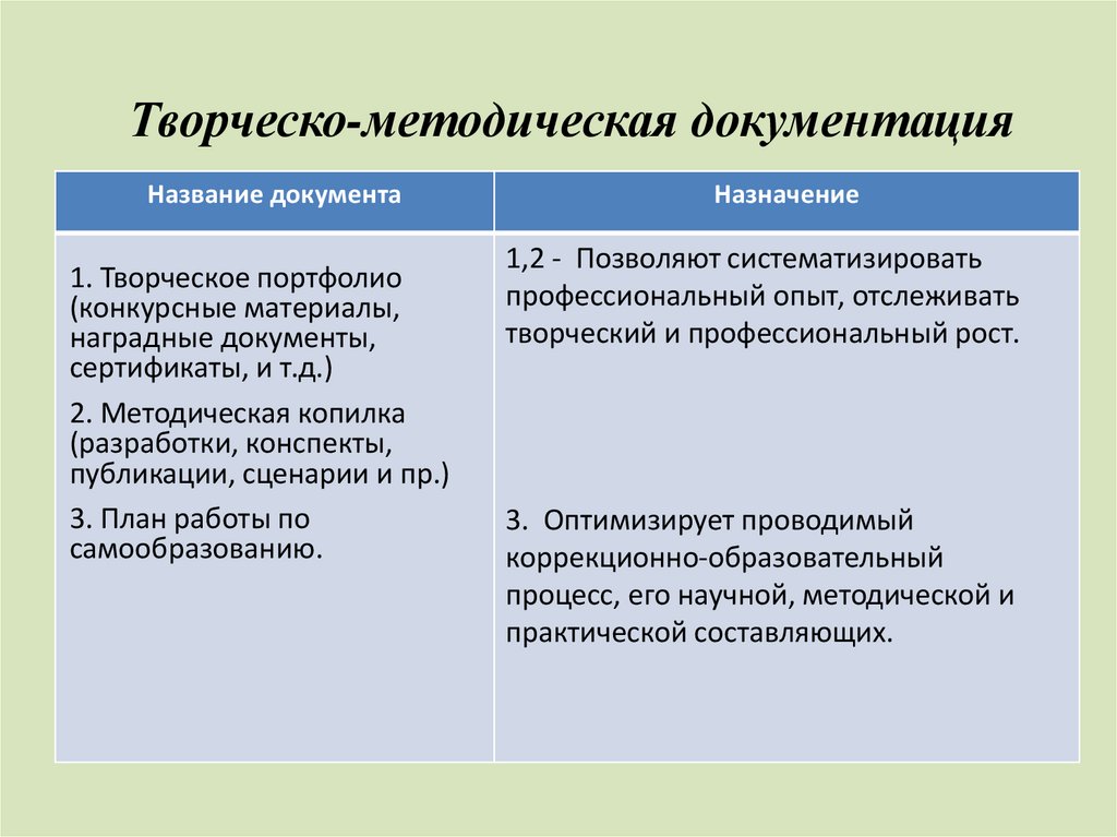 Творческо-методическая документацияНазвание документа