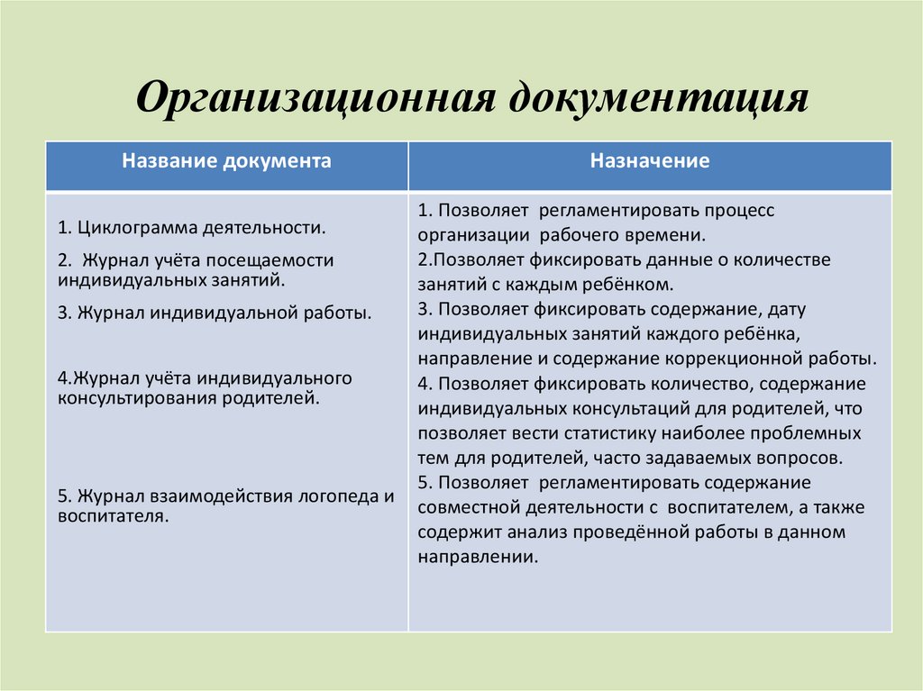 Документация учителя-логопеда по организации коррекционно-развивающего процесса в ДОУ