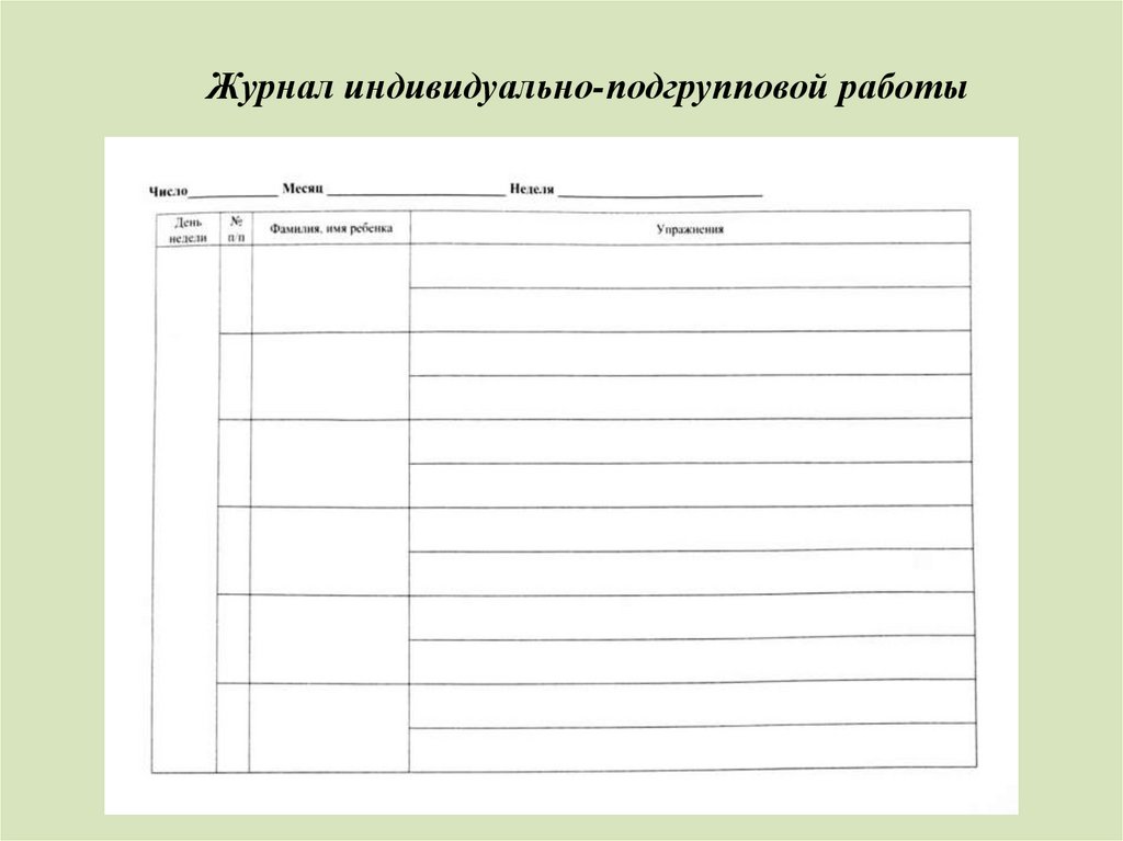 Журнал индивидуально-подгрупповой работы9.