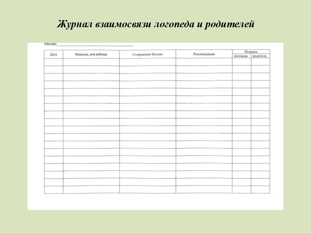 Журнал взаимосвязи логопеда и родителей10.