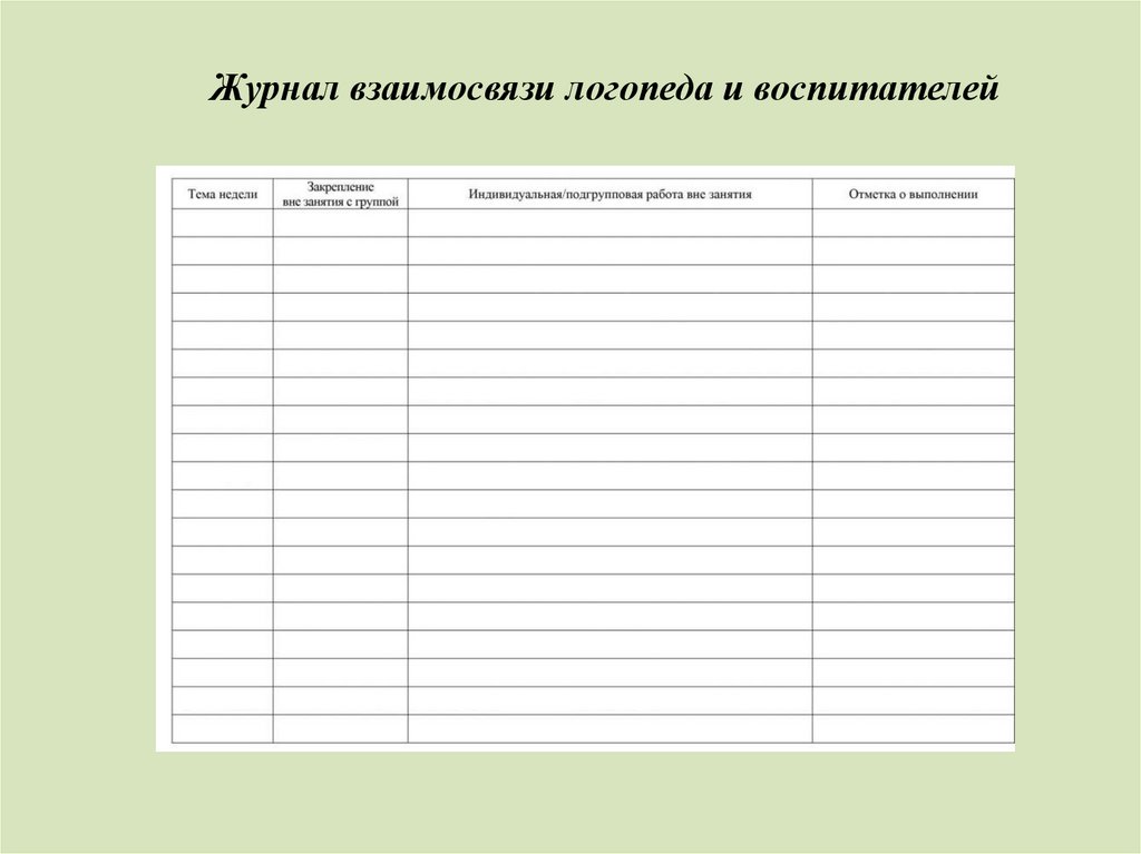 Журнал взаимосвязи логопеда и воспитателей11.
