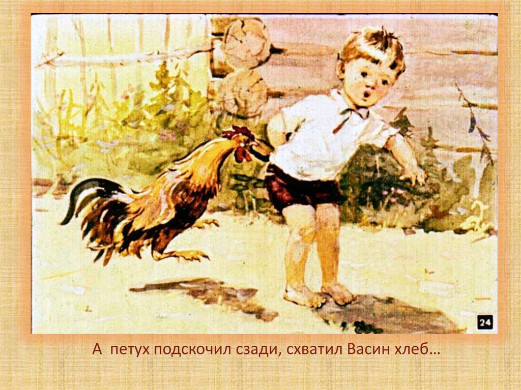 А петух подскочил сзади, схватил Васин хлеб…13.