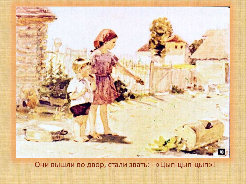 Они вышли во двор, стали звать: - «Цып-цып-цып»!7.