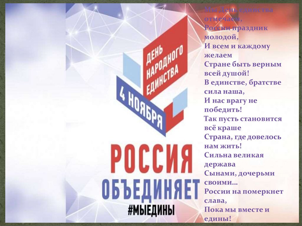 Мы День единстваотмечаем,