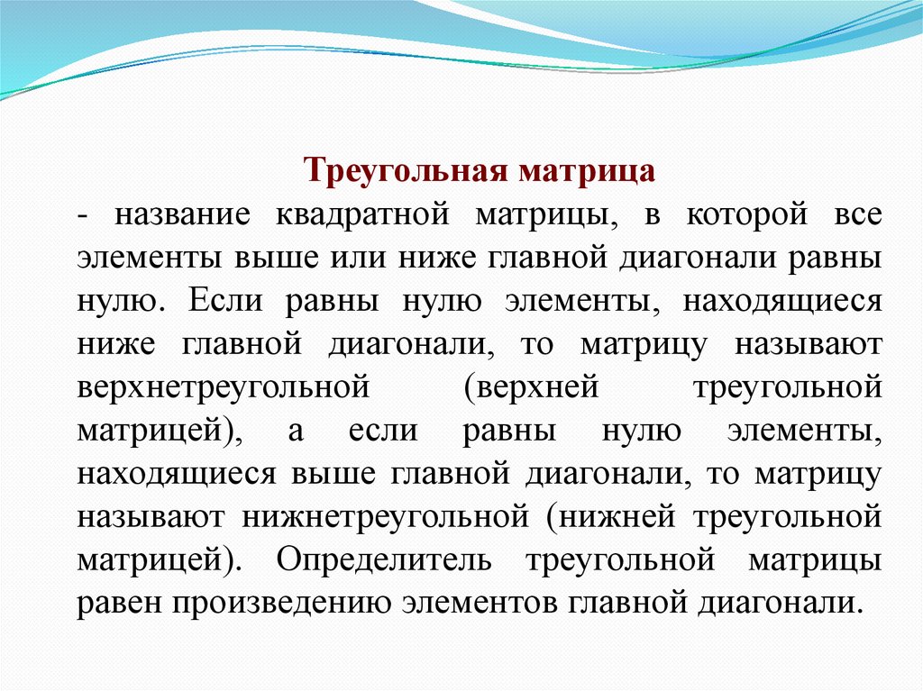 матрицей). Определитель треугольной матрицы