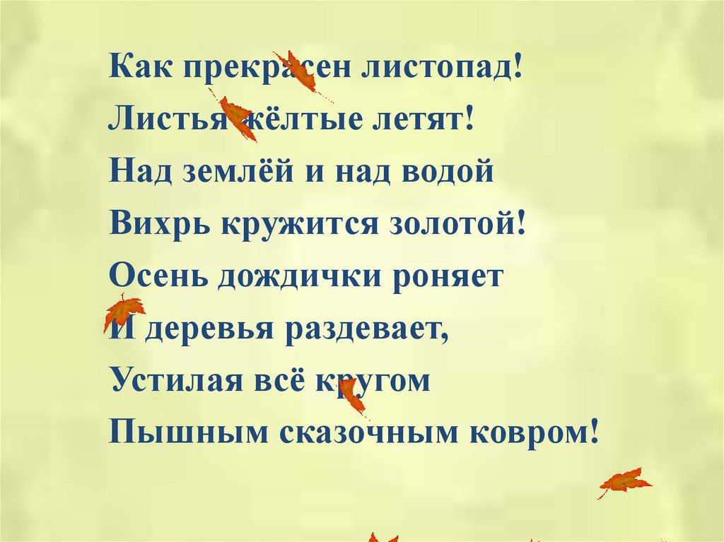 Как прекрасен листопад!Листья жёлтые летят!